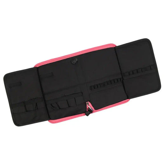 Estojo Pincéis Duplo Glitter Pink com vários compartimentos, para pincéis e instrumentos.