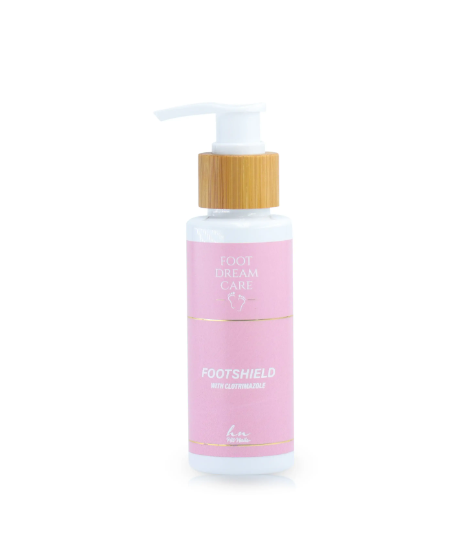 FootShiel with Clotrimazole 100ml Contém componentes biológicamente ativos - Citrus Bergamia, Clotrimazol e Metil Salicilato - que previnem a formação de fungos, revivem e melhoram a condição geral da pele, a sua elasticidade e hidro-equilíbrio.